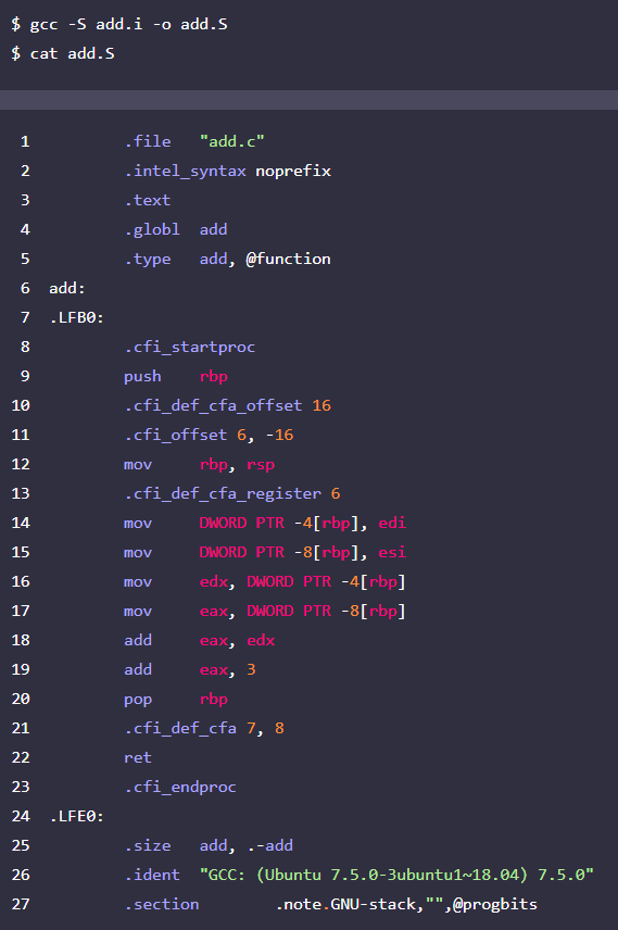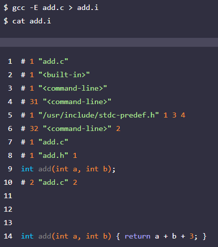 c언어로 작성된 코드는 일반적으로 전처리(Preprocess), 컴파일(Compile), 어셈블(Assemble), 링크(Link)의 과정을 거쳐 바이너리로 번역된다. 아래의 예제 코드를 사용하여 각 단계를 알아보도록 하자.