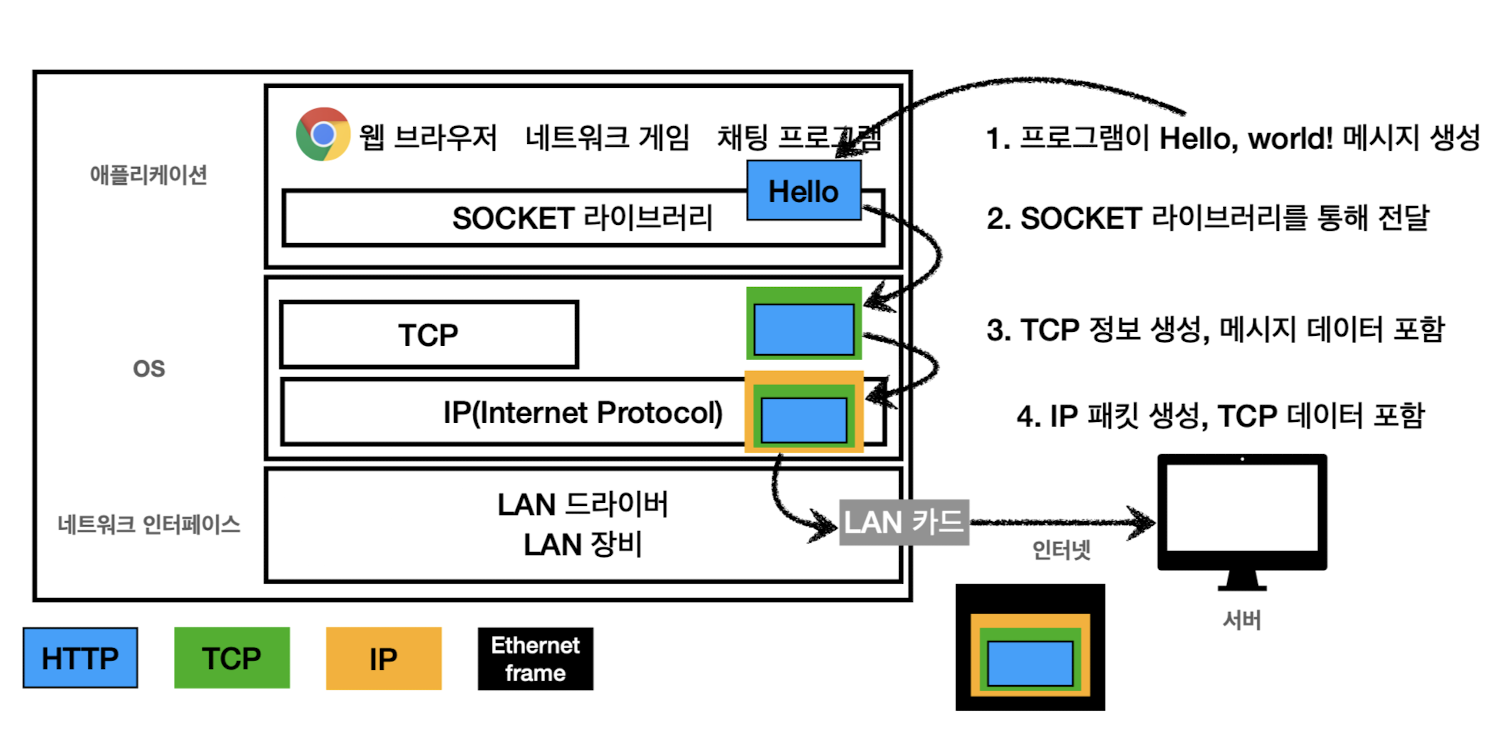 출발지(클라이언트)와 목적지(서버)를 구분할 수 있는 주소를 추가하여 우리가 전달하고자 하는 정보가 어디로 가야하는지 알려준다.