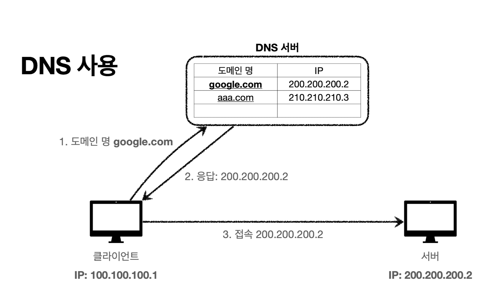 IP는 기억하기 어렵고 변경될 수 있기 때문에 해당 문제를 해결하기 위해 DNS를 사용