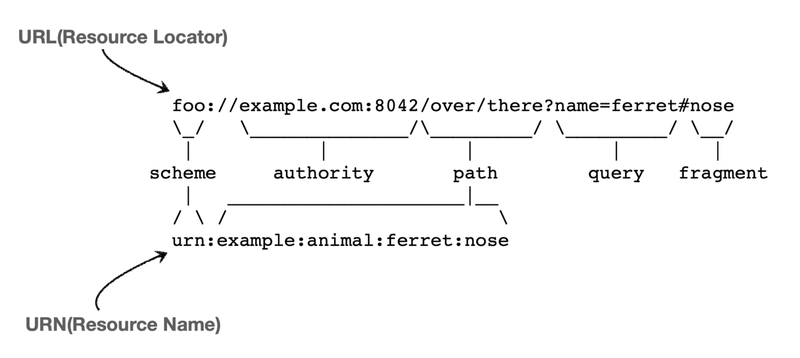 URI는 가장 큰 개념이고 URL과 URN으로 분류된다.(URN은 거의 사용되지 않음)