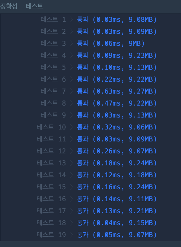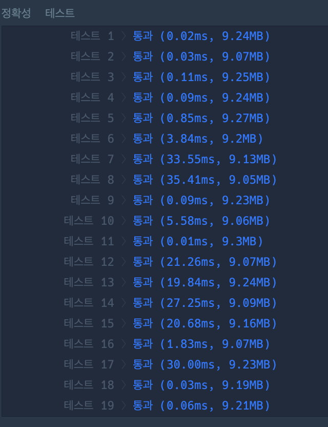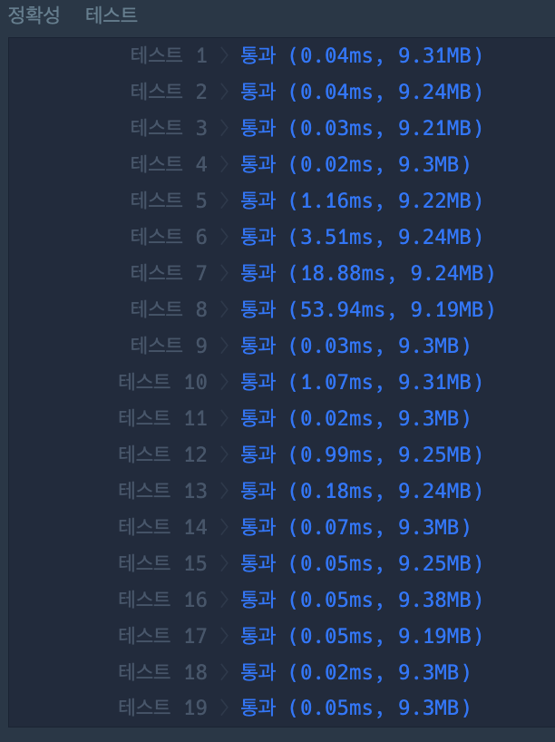 전체적으로 통과시간이 크게 줄었다! 언제쯤 처음부터 이런 풀이를 생각할 수 있게 될까...