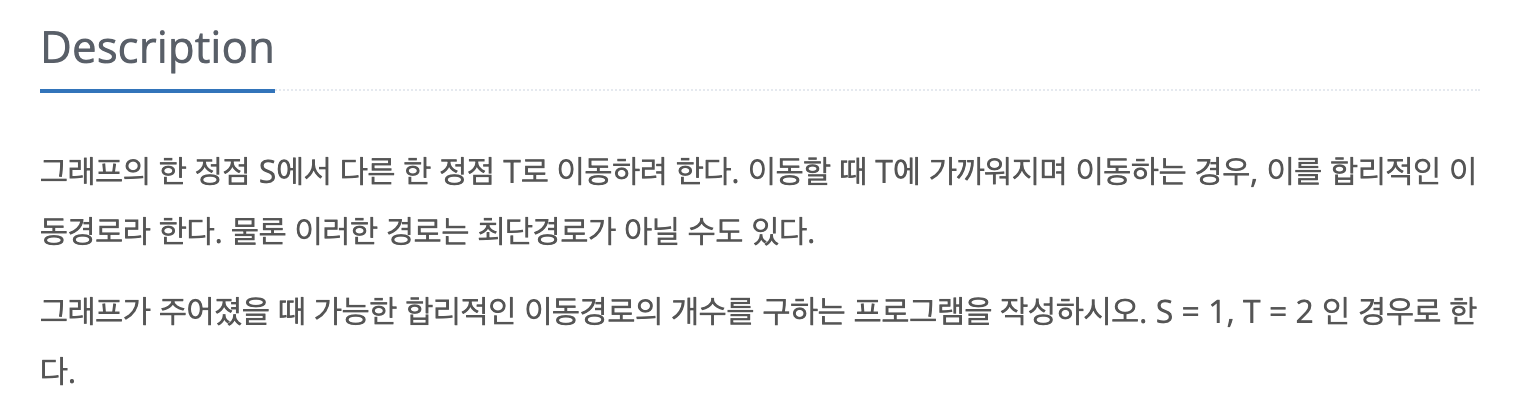 문제가 굉장히 너무 간결하게 써있어서 직관적으로 이해하기 어려웠던 것 같다. S에서 시작하여 T로 이동하는데, 한 정점에서 다른 정점으로 이동할 때 목적지인 T에 더 가까워지며 이동하는 경우 이것을 합리적인 이동경로라고 한다.