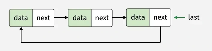 끝 노드가 다시 시작 노드를 가르키고 있는 LinkedList이다. 이것도 노드의 참조에 따라 Singly와 Doubly로 나누어진다. 시작이 곧 끝이므로 맨 앞/뒤에 삽입/삭제하는 연산이 O(1)이다.