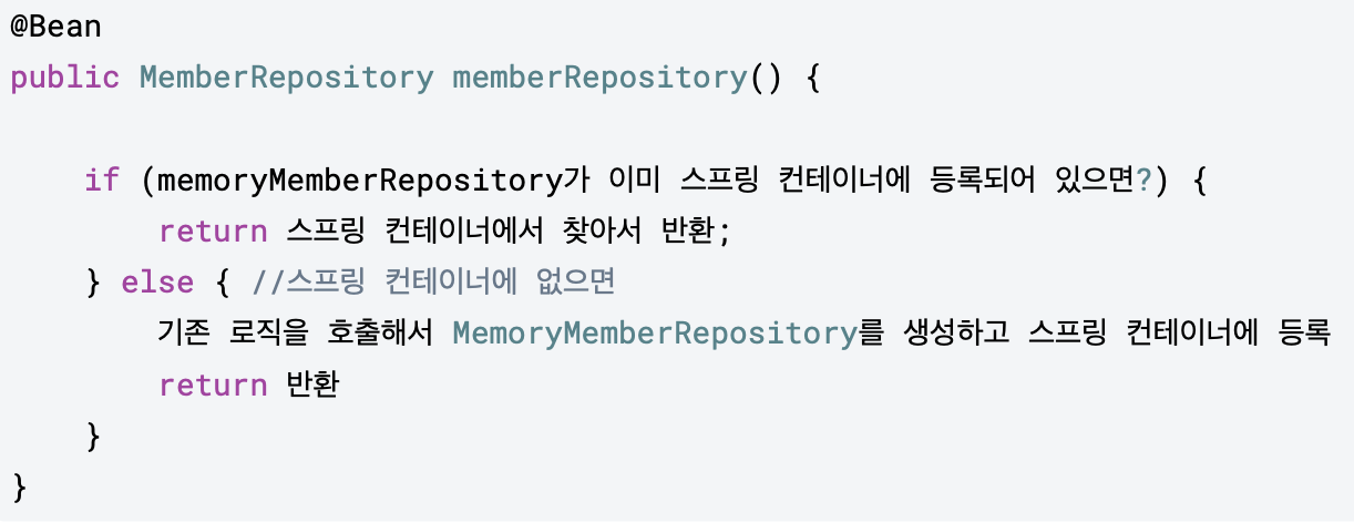 - 이후 getBean()이 오면 새로 만들지 않고 캐시에서 반환