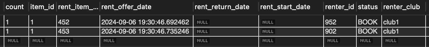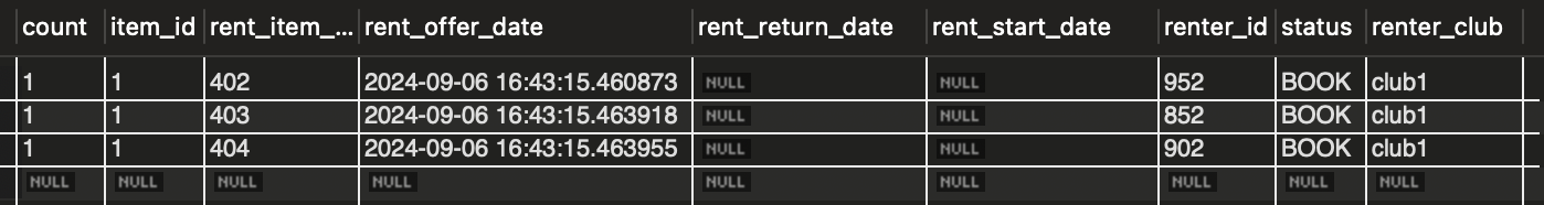 DB에서도 3개의 예약이 모두 성공한 것을 확인할 수 있다.