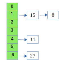 분리 연결법은 보편적으로 사용되는 방법으로 배열의 각 칸을 연결 리스트(컨테이너)의 시작점으로 보는 방식이다. 이름에서도 알 수 있듯이 해시 충돌이 나는 경우 Chaining하여 같은 칸에 줄줄이 다는 방법이다.