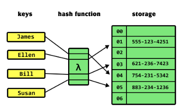 키 -> 값을 빠르게 찾기 위한 자료구조로, 배열의 빠른 접근(random access)과 원하는 키로 값을 찾는 맵(map) 개념을 합친 것이다.