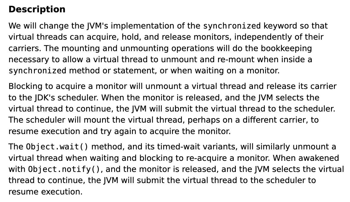 JEP 491: Synchronize Virtual Threads without Pinning