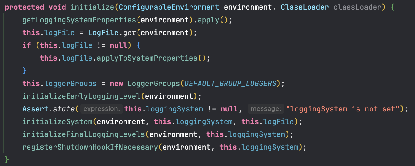 근데 load를 호출할 때 getEnvironment를 가져와서 넘겨주면 안되나? 싶긴했지만 코드 내에서 전체적인 메서드의 매개변수로 LoggingInitializationContext를 넘겨주고 코드 일관성 측면에서 이렇게 냅둔 것 같다. (뇌피셜)
