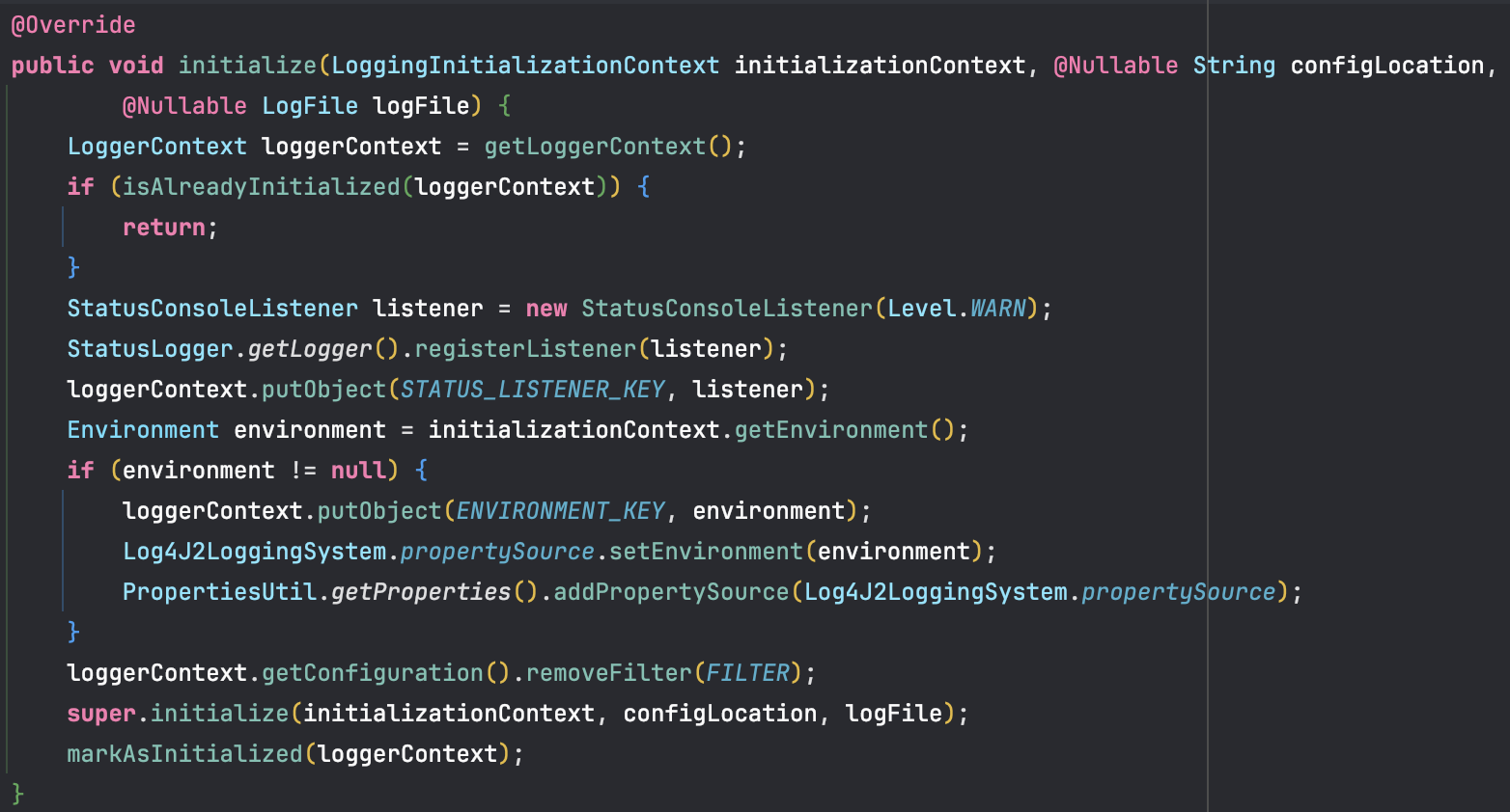 LoggingInitializationContext 세팅 과정에 대해서 설명하자면 너무 길고 코드가 많아지기 때문에... notion에 간략하게 흐름을 정리한 문서를 첨부해두겠습니다. 궁금하신 분은 확인해보세요!